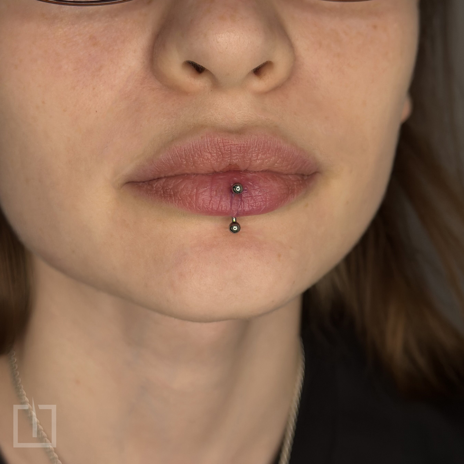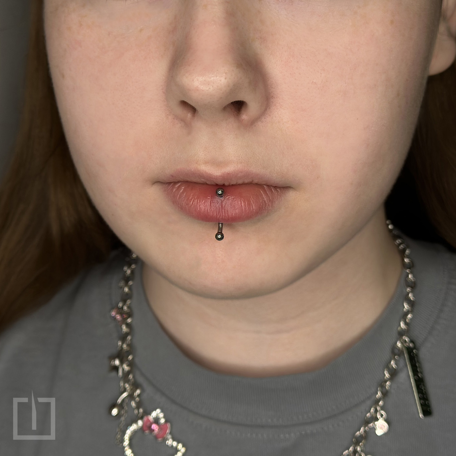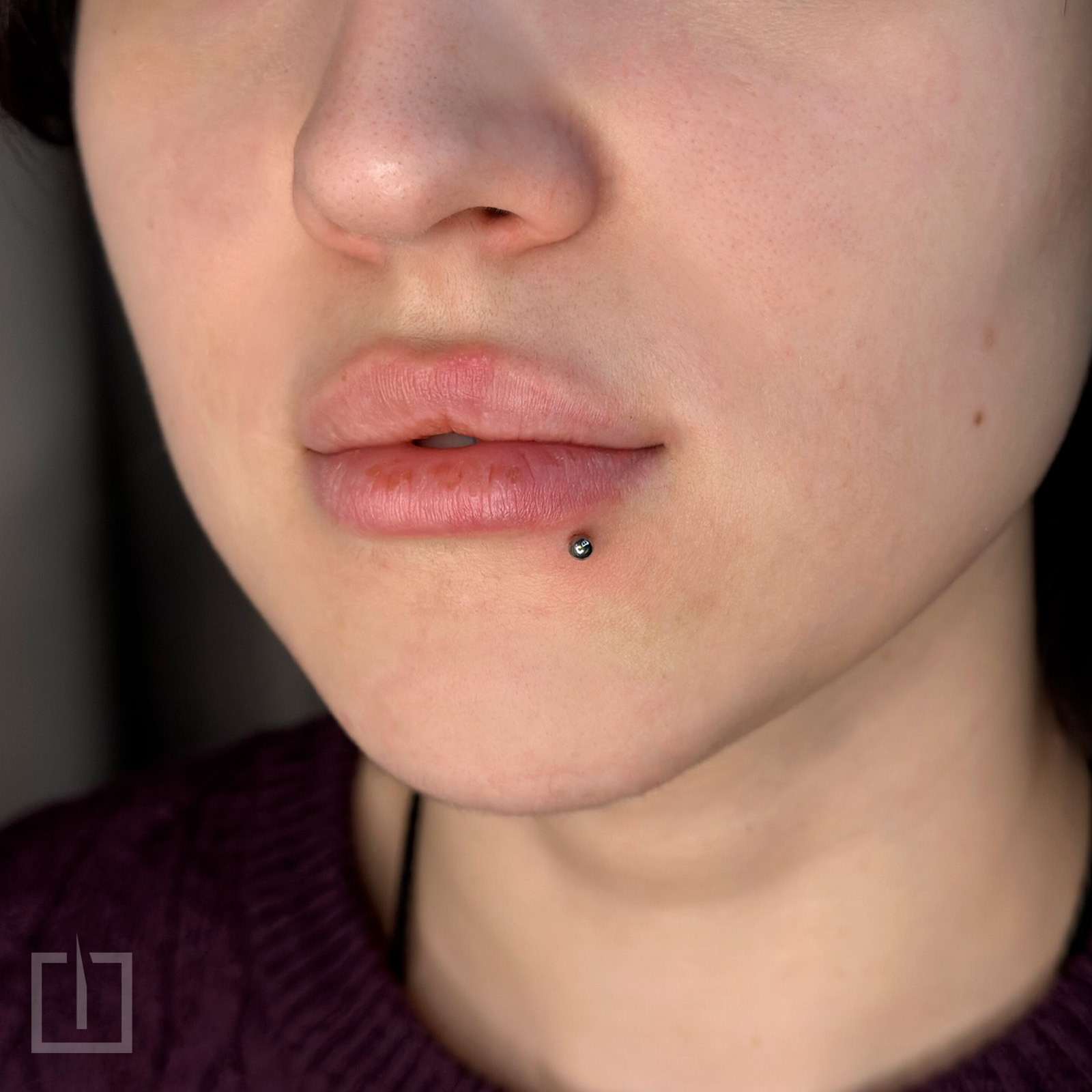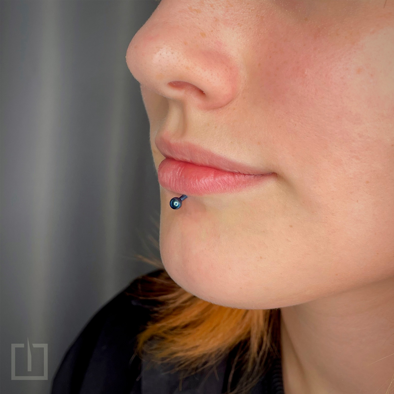 Пирсинг «Лабрет» — это стильный и выразительный выбор для тех, кто хочет выделить свои губы и подчеркнуть свою индивидуальность. Этот пирсинг располагается в центре под нижней губой, ниже линии красной каймы, создавая интересный и уникальный внешний вид. Он не только добавляет акцент к вашему образу, но и позволяет проявить свою креативность через разнообразие украшений.