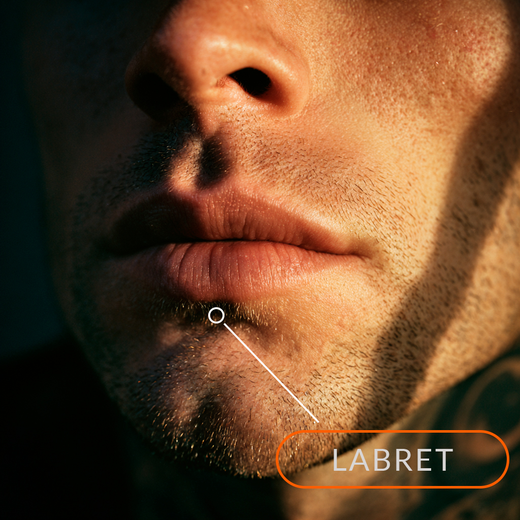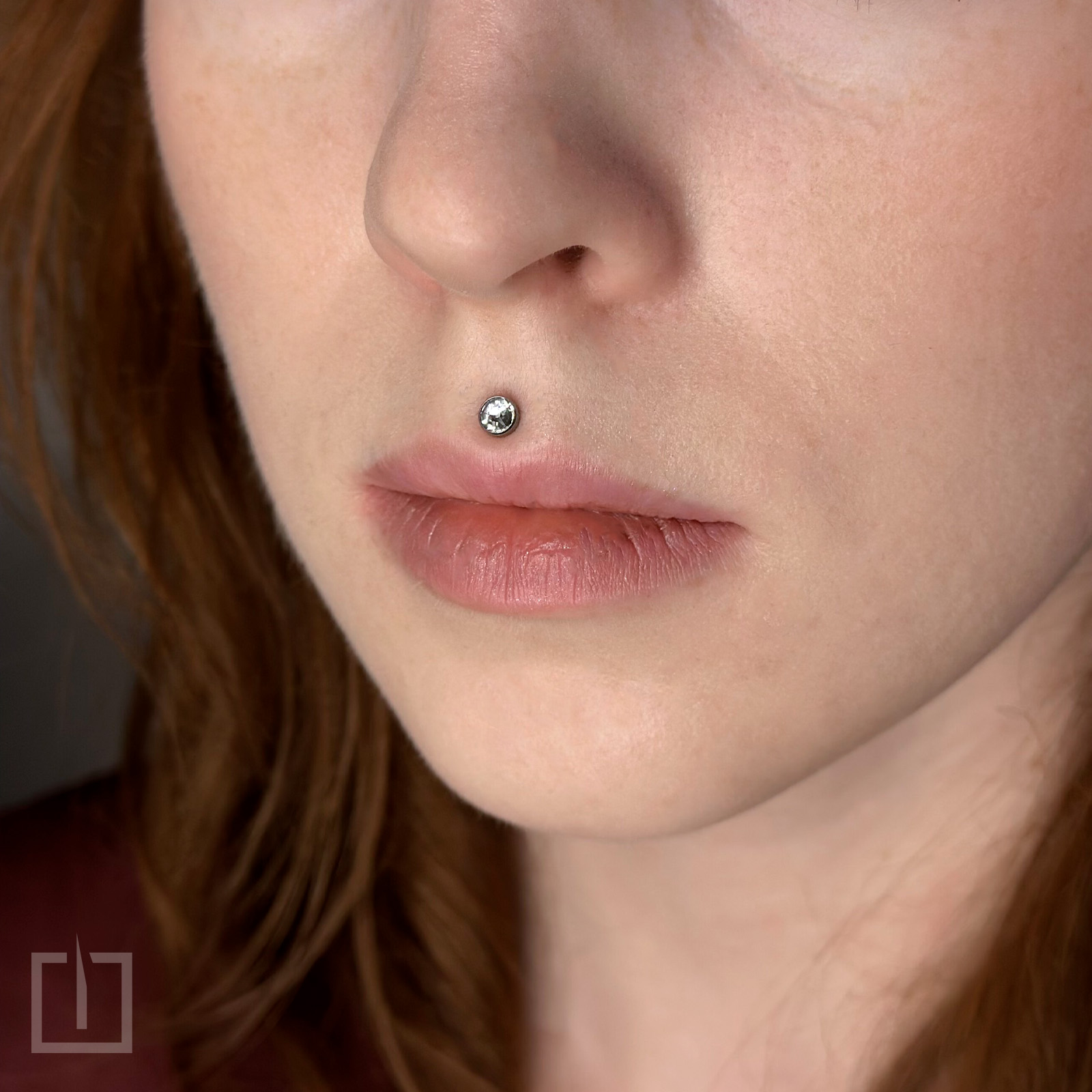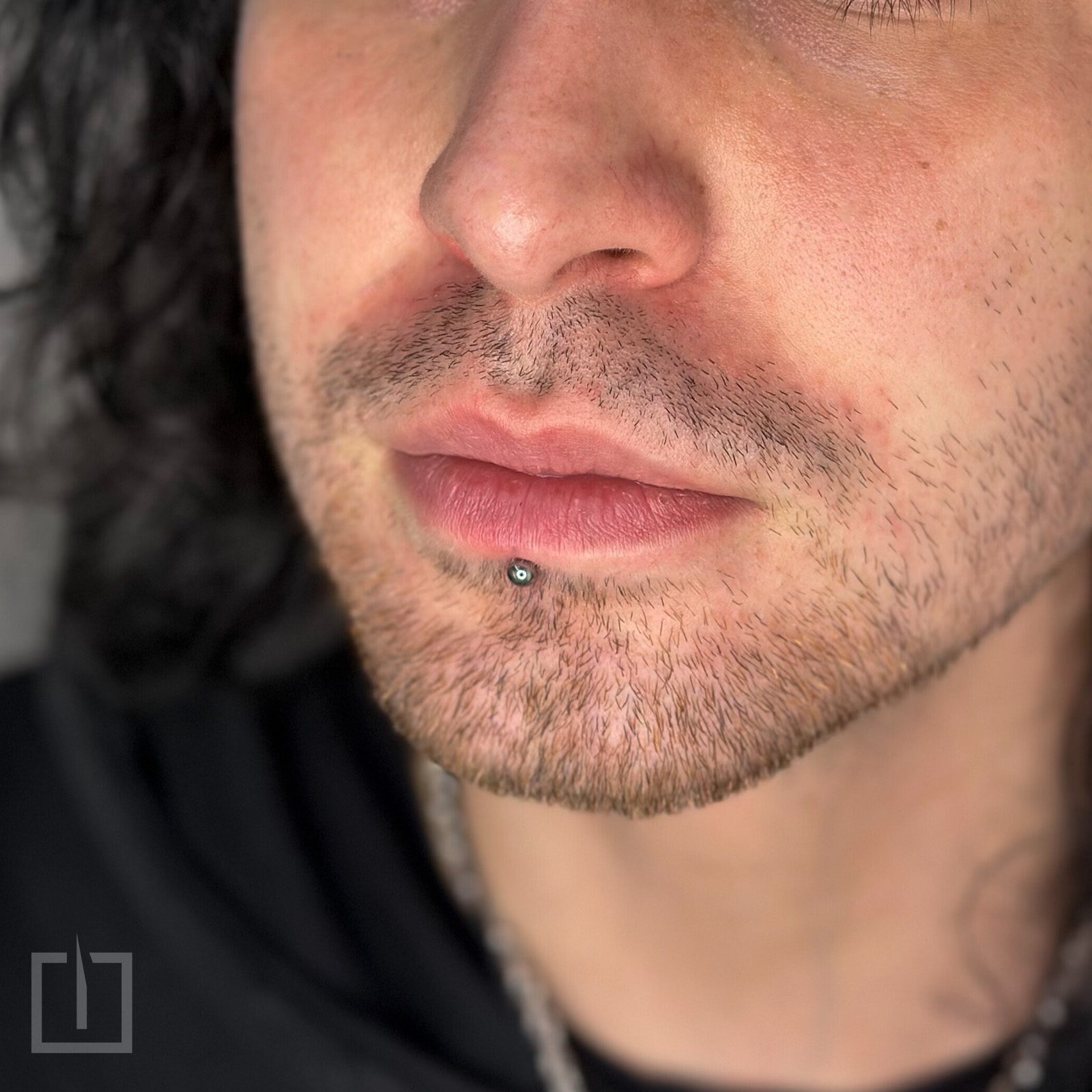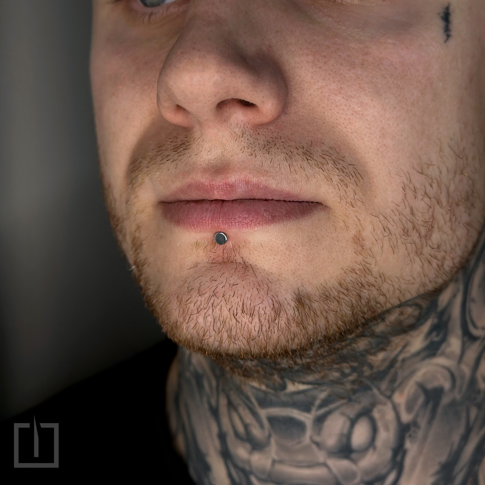 Пирсинг «Лабрет» — это стильный и выразительный выбор для тех, кто хочет выделить свои губы и подчеркнуть свою индивидуальность. Этот пирсинг располагается в центре под нижней губой, ниже линии красной каймы, создавая интересный и уникальный внешний вид. Он не только добавляет акцент к вашему образу, но и позволяет проявить свою креативность через разнообразие украшений.