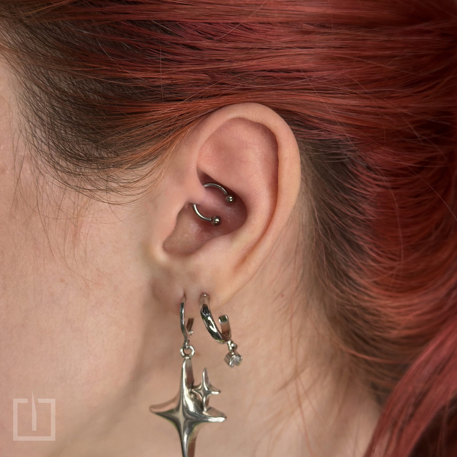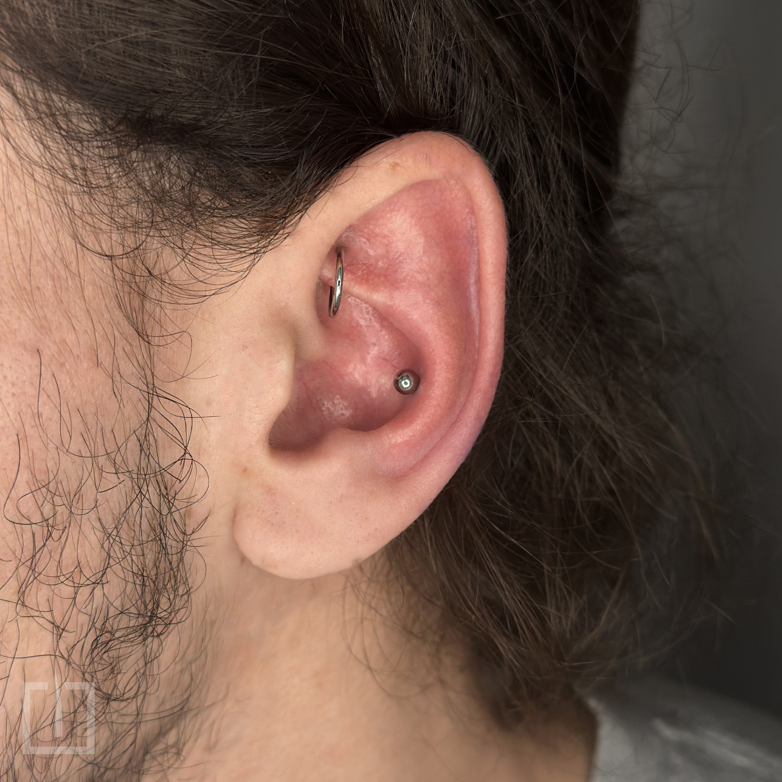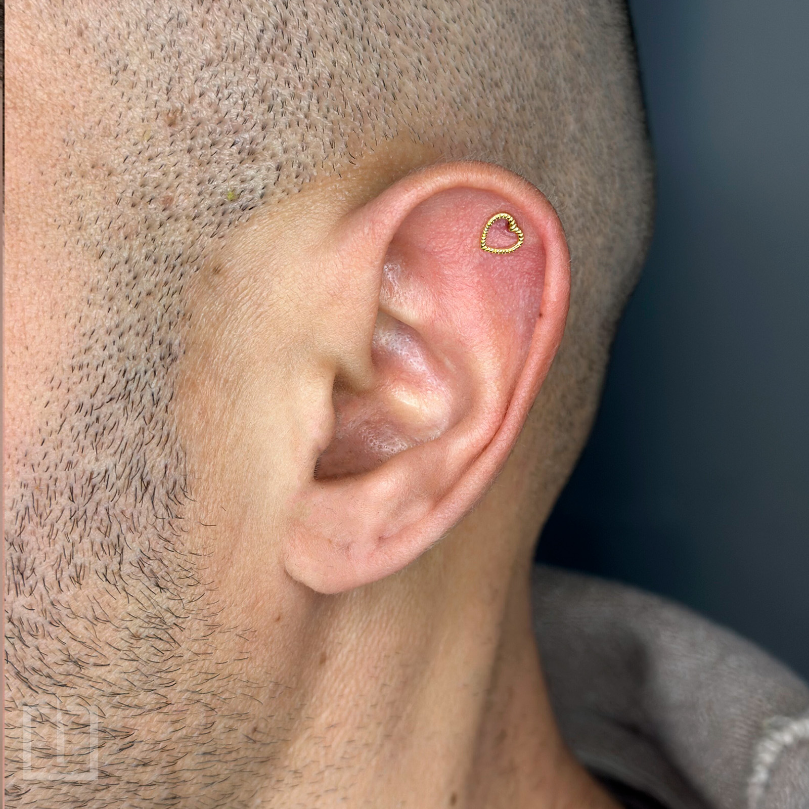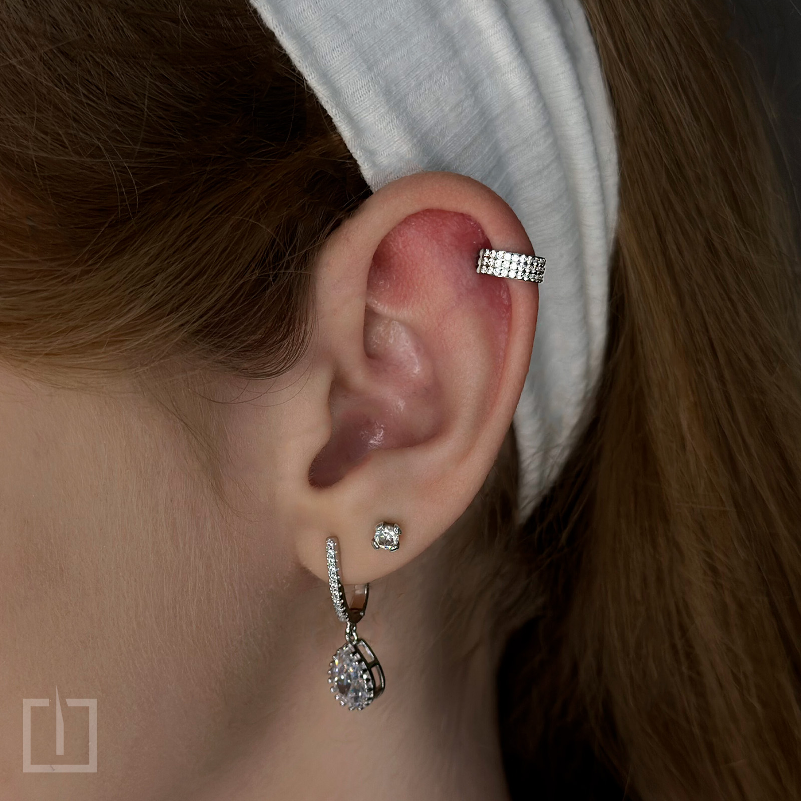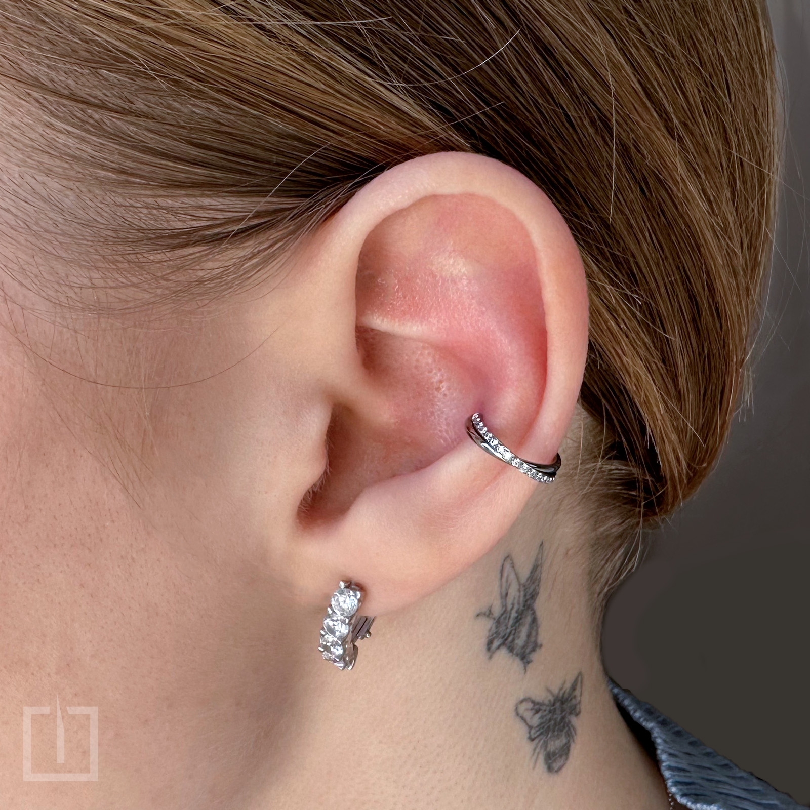 Пирсинг «Хеликс» — это модный и смелый выбор для тех, кто хочет выделиться и подчеркнуть свою индивидуальность. Этот пирсинг выполняется в хрящевой части уха, создавая эффектный внешний вид и позволяя вам экспериментировать с разнообразием аксессуаров. Он идеально подходит для создания уникального стиля и добавляет интересный акцент к вашему образу.