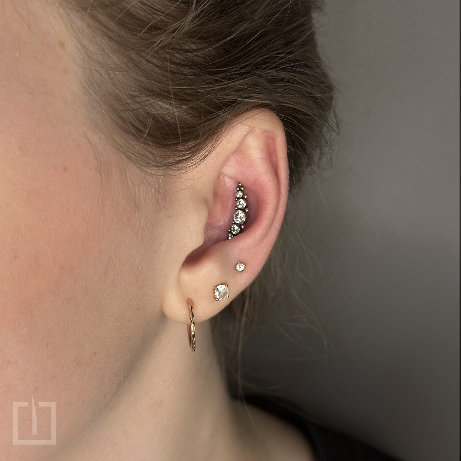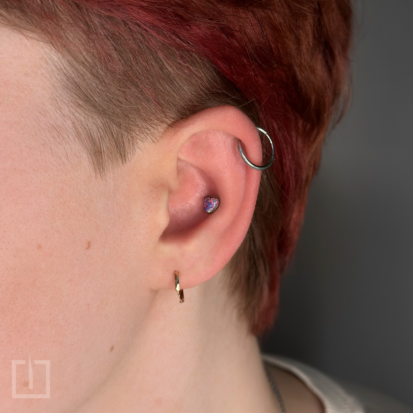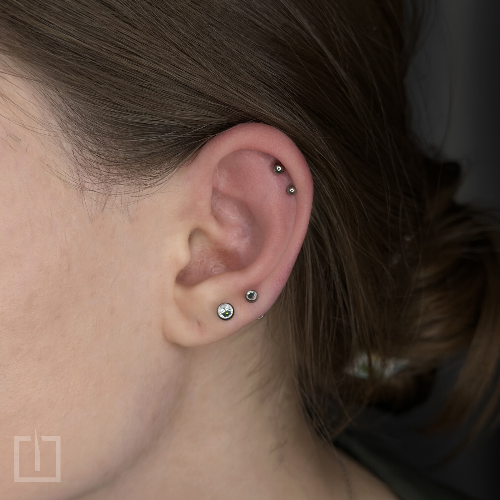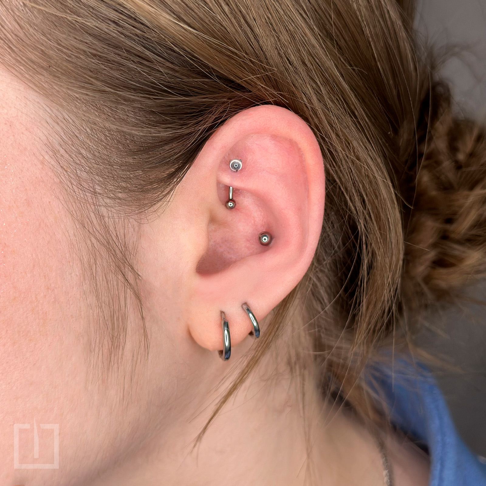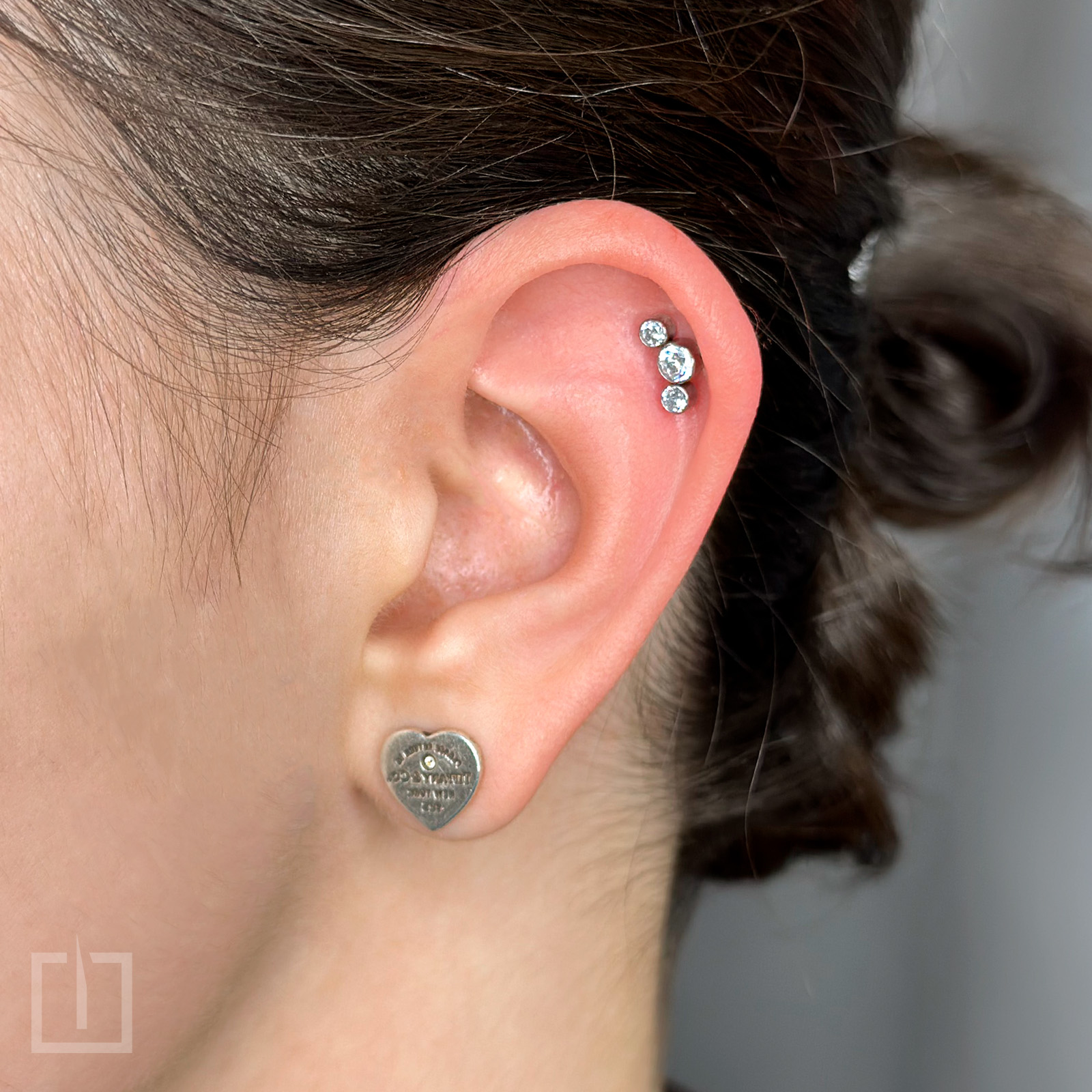 Пирсинг «Хеликс» — это модный и смелый выбор для тех, кто хочет выделиться и подчеркнуть свою индивидуальность. Этот пирсинг выполняется в хрящевой части уха, создавая эффектный внешний вид и позволяя вам экспериментировать с разнообразием аксессуаров. Он идеально подходит для создания уникального стиля и добавляет интересный акцент к вашему образу.