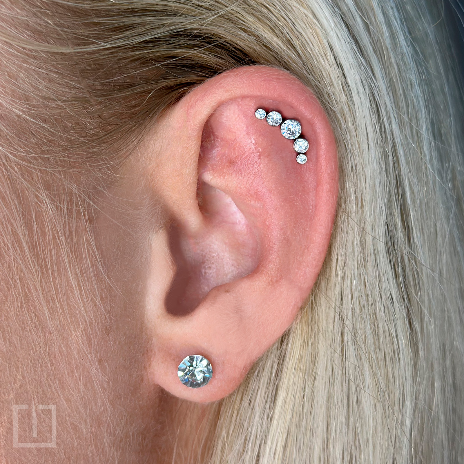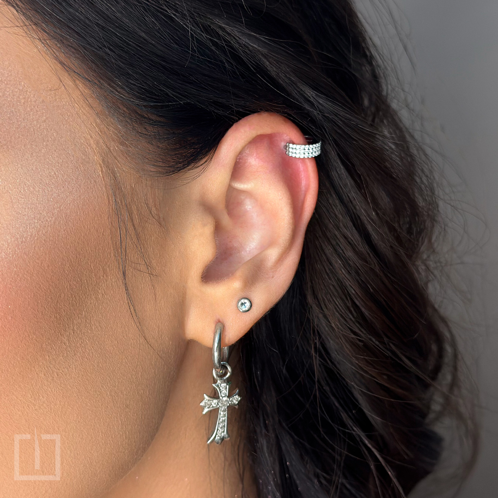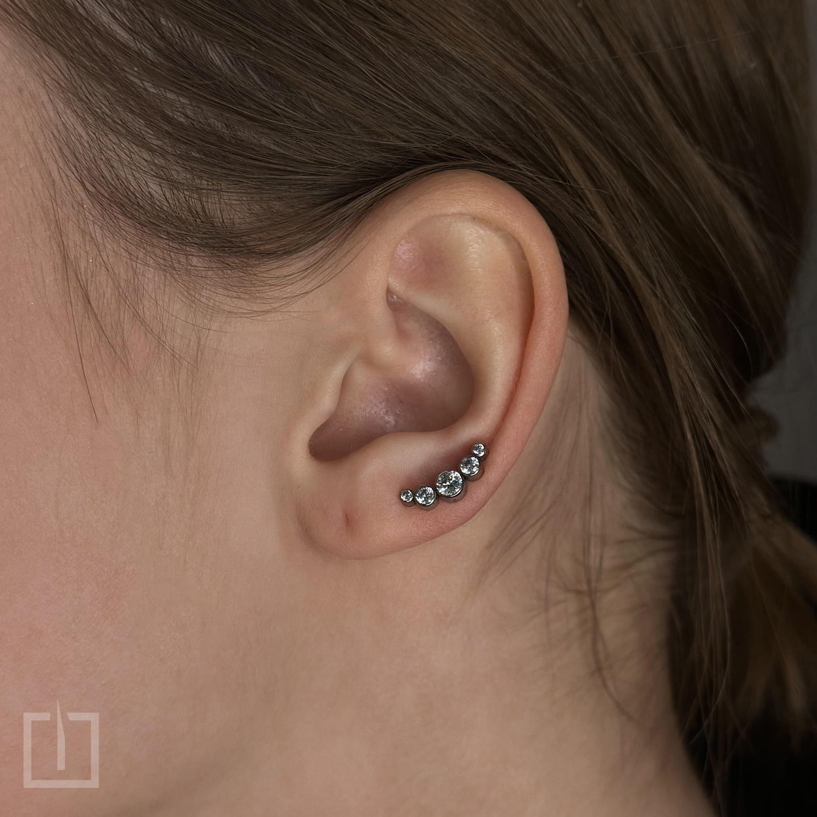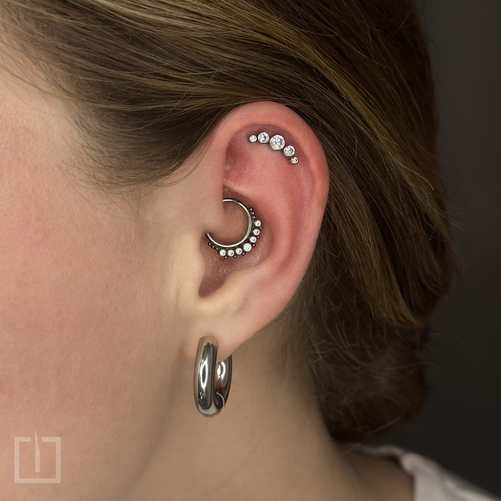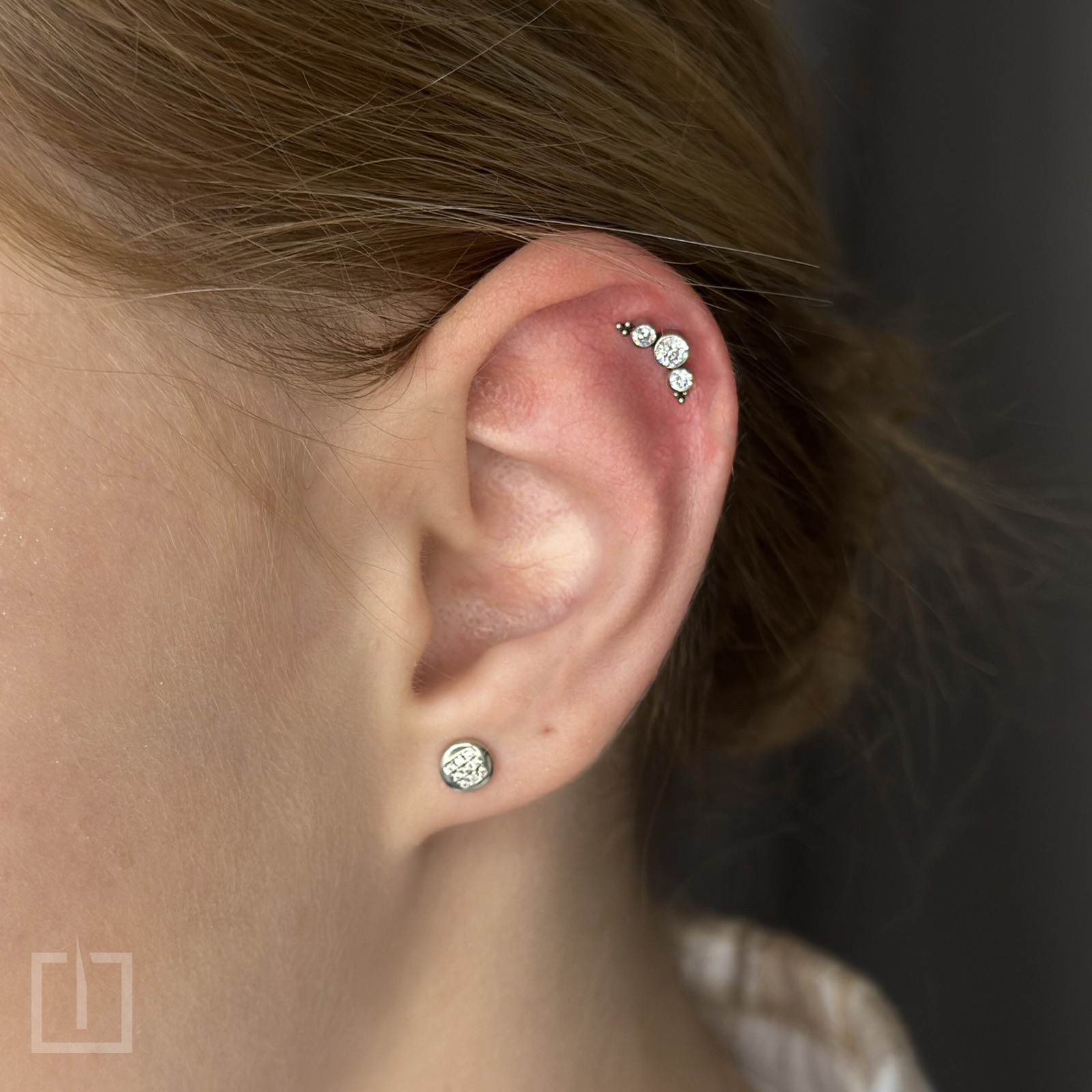 Пирсинг «Хеликс» — это модный и смелый выбор для тех, кто хочет выделиться и подчеркнуть свою индивидуальность. Этот пирсинг выполняется в хрящевой части уха, создавая эффектный внешний вид и позволяя вам экспериментировать с разнообразием аксессуаров. Он идеально подходит для создания уникального стиля и добавляет интересный акцент к вашему образу.