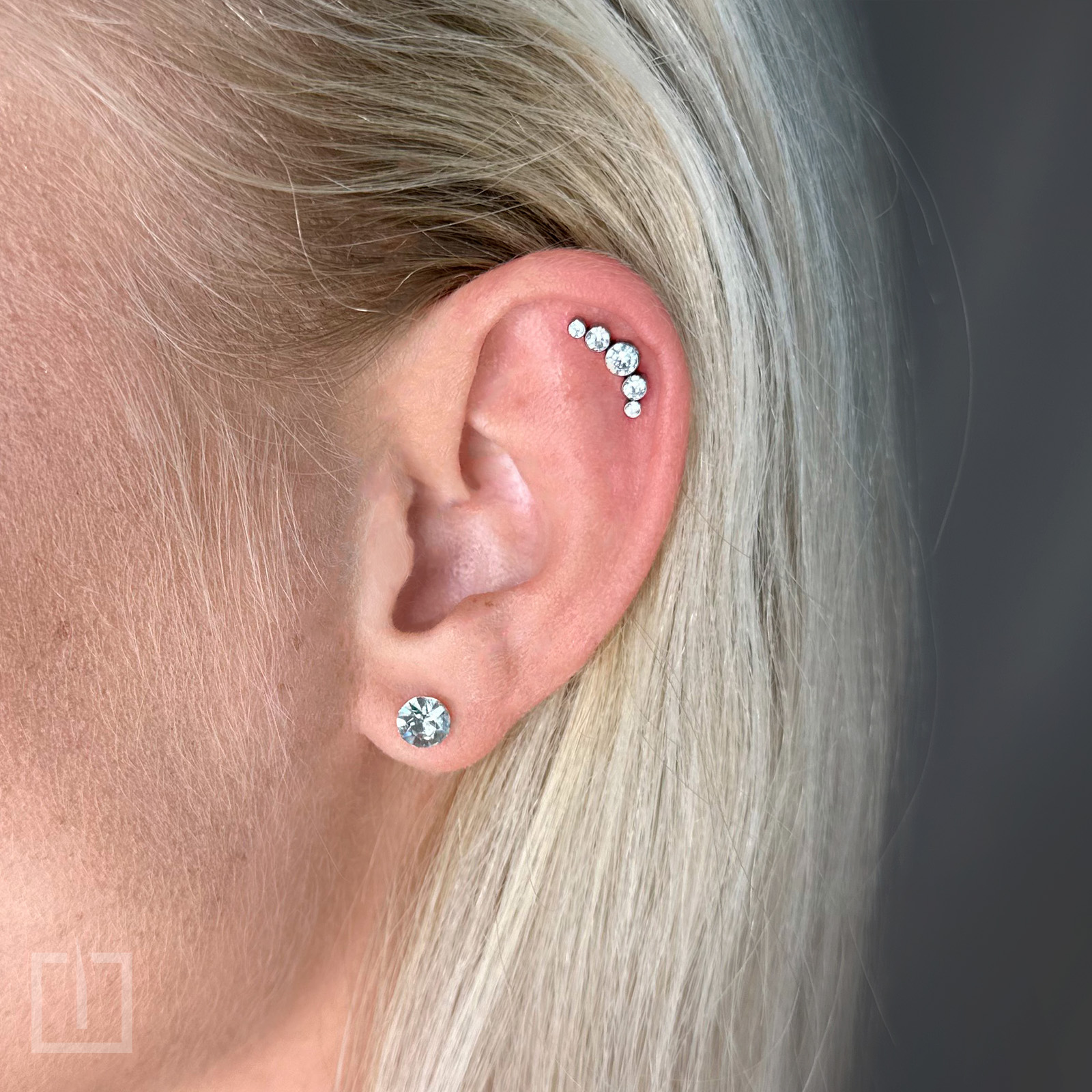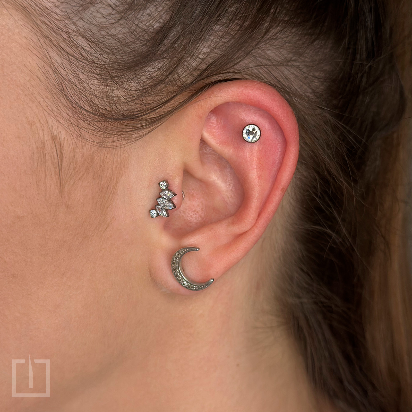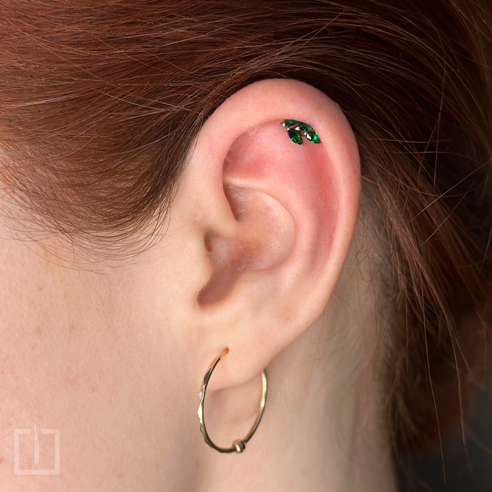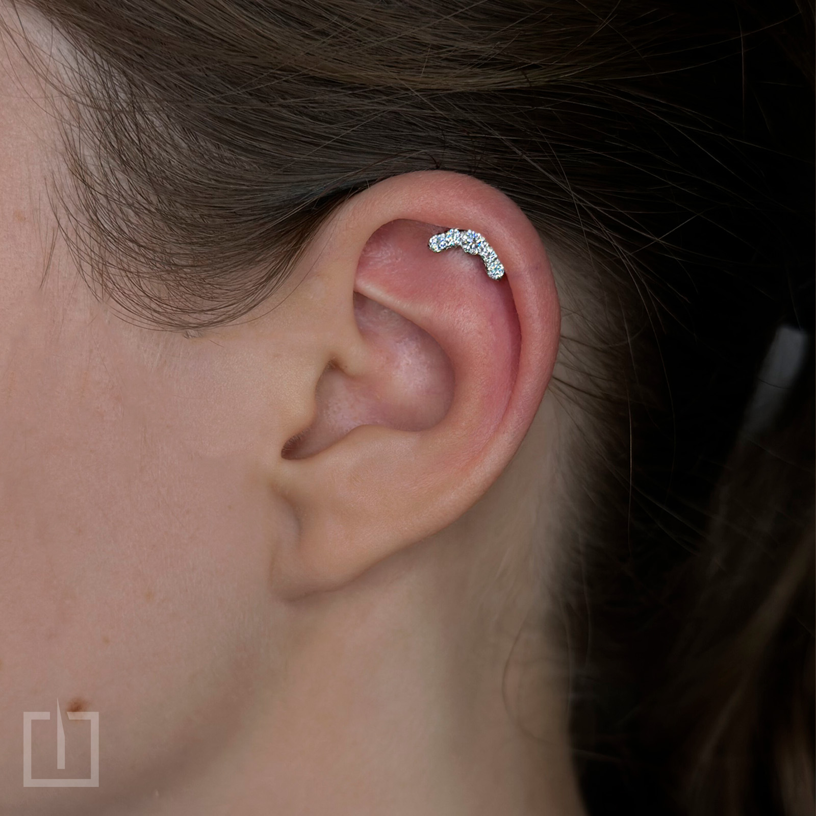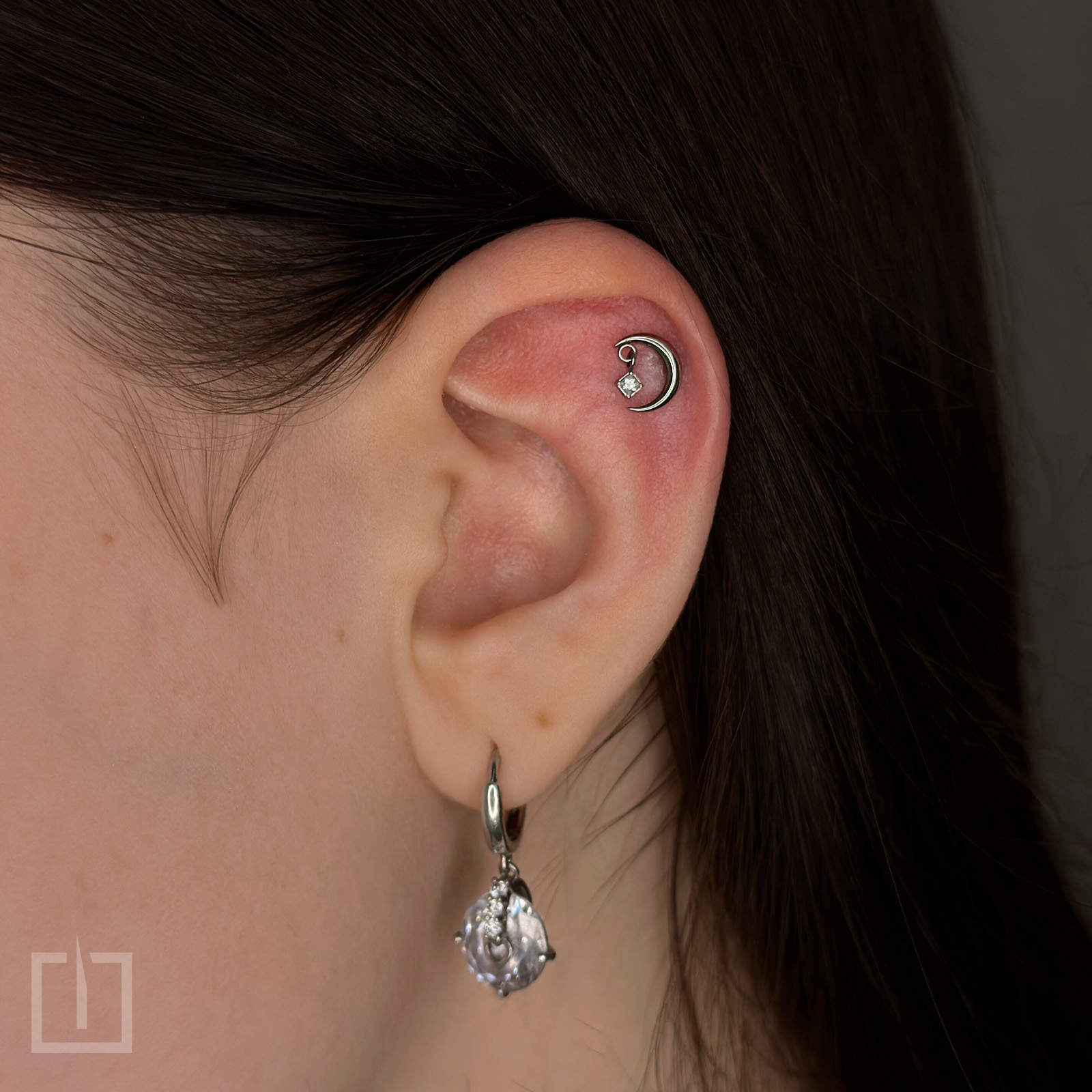 Пирсинг «Форвард Хеликс» — это необычный и стильный вариант, который набирает популярность благодаря своему уникальному и привлекательному внешнему виду. Этот аккуратный и элегантный прокол располагается в верхней части хряща, рядом с основанием уха, создавая интересный акцент. Пирсинг идеально подходит для тех, кто хочет добавить изюминку в свой образ и выразить свою индивидуальность с помощью оригинальных украшений.