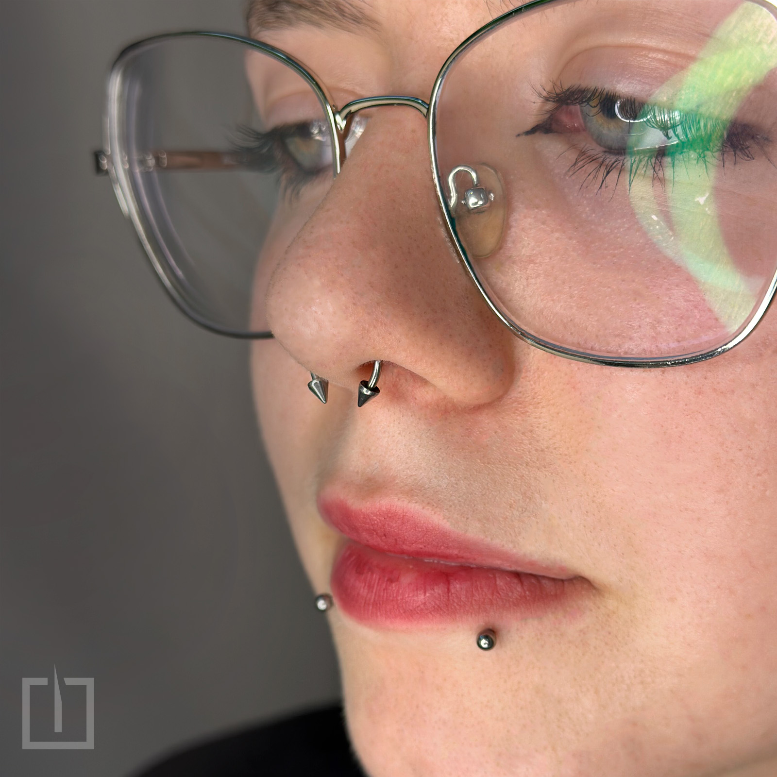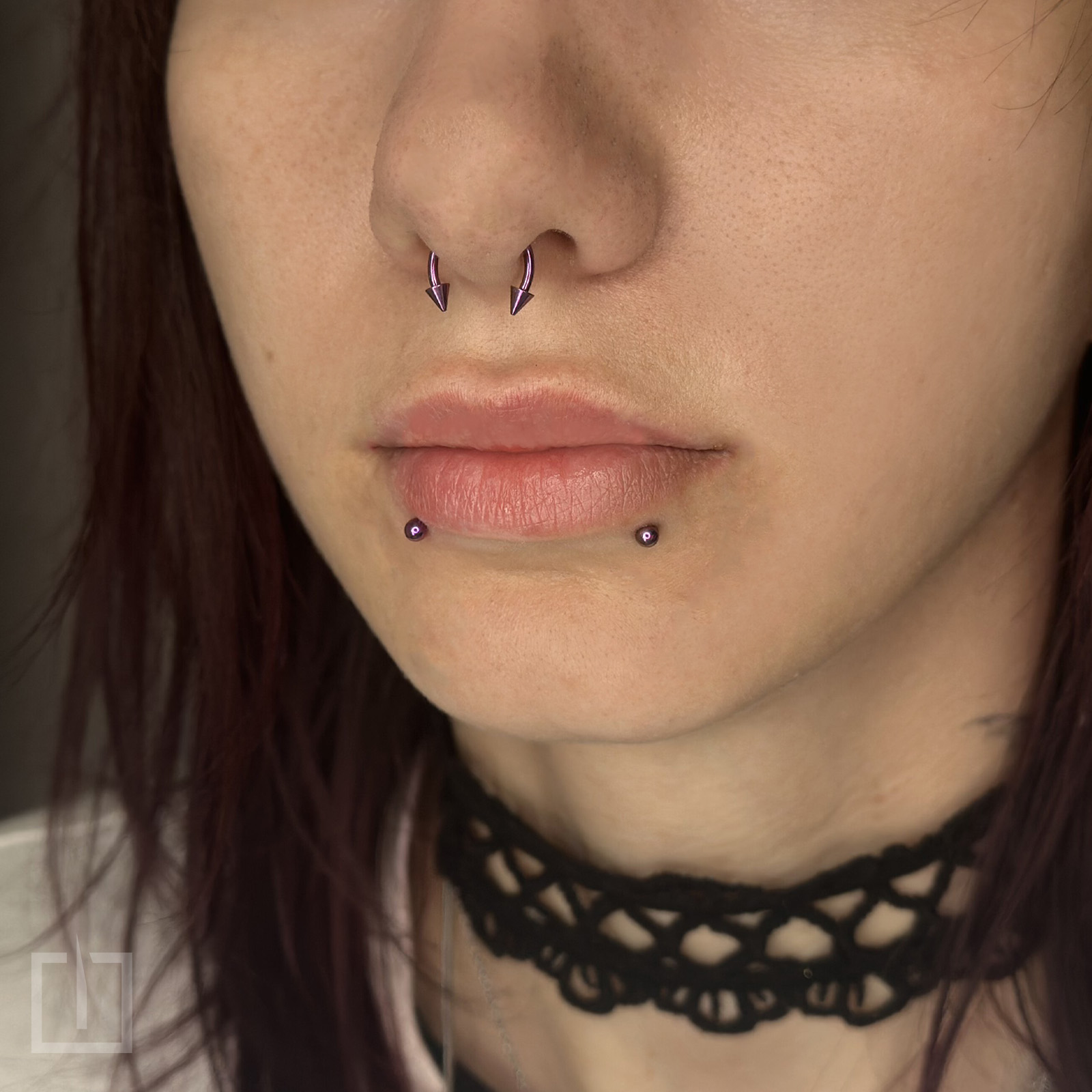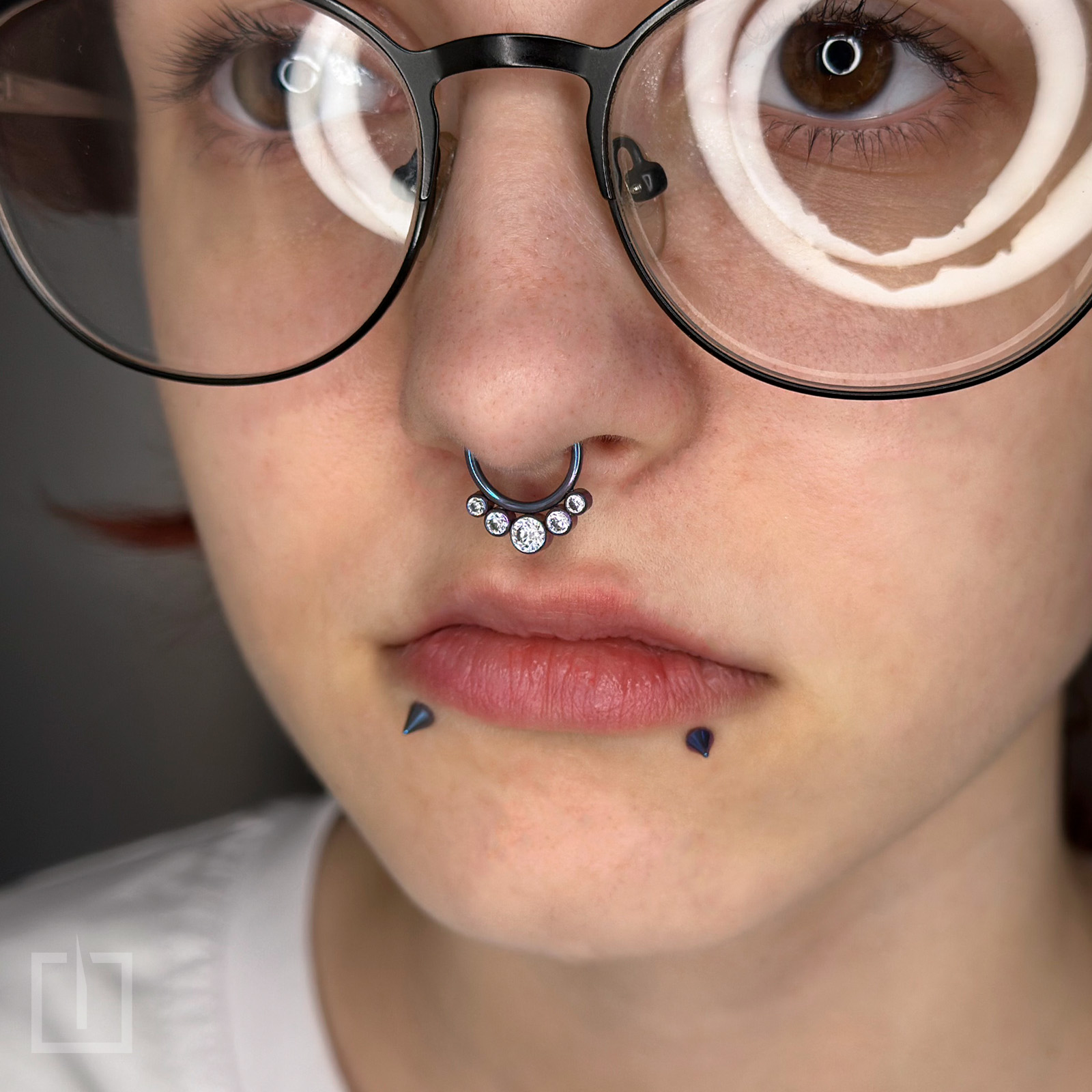 Пирсинг «Септум» — остаётся одним из самых актуальных видов пирсинга последних лет и является одним из немногих, где можно сразу установить кольцо. Прокол располагается в центральной носовой перегородке между ноздрями, в области, известной как "sweet spot", что позволяет избежать повреждения хряща. Этот пирсинг создаёт выразительный акцент на лице и отлично подходит для создания уникального стиля.