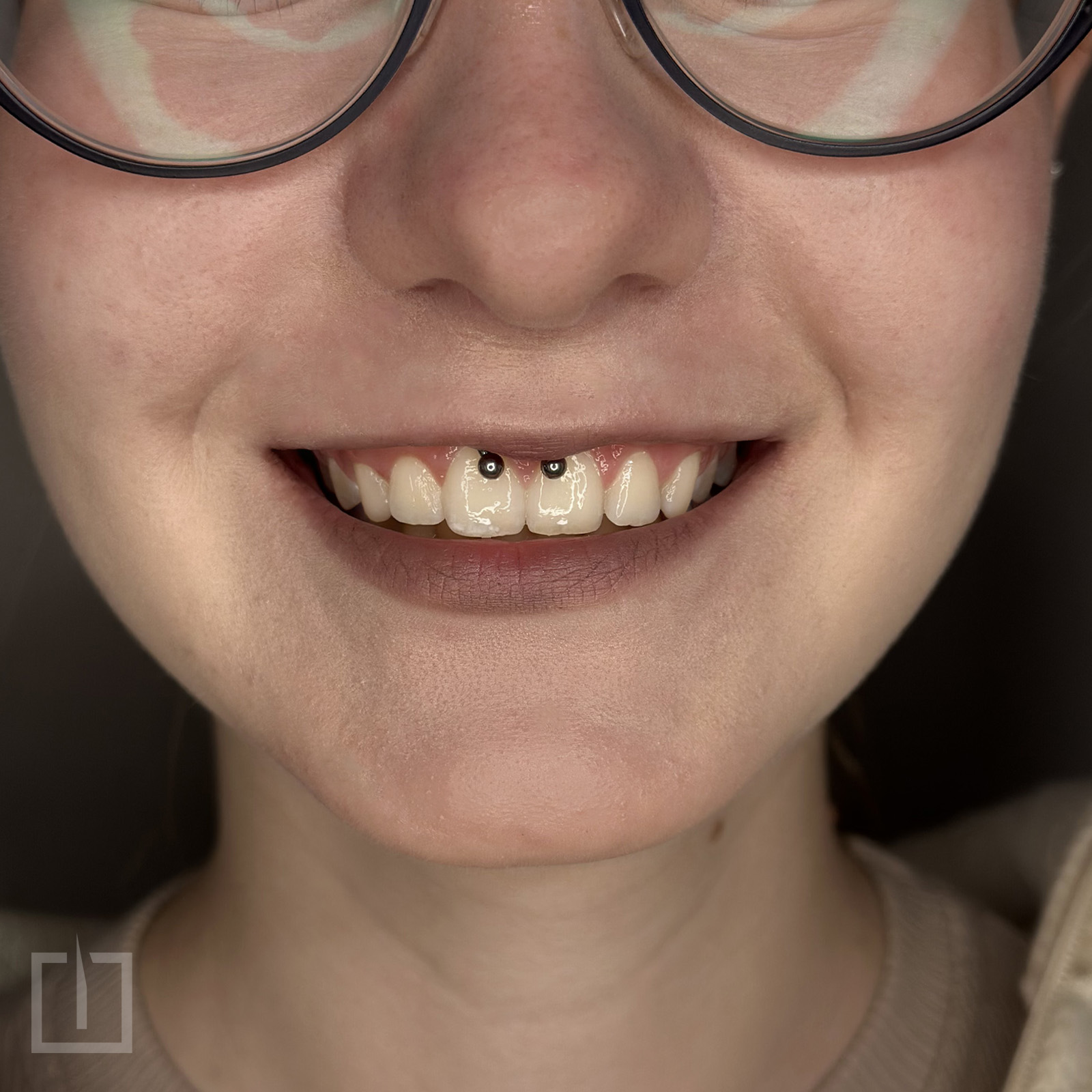 Пирсинг смайл — это тот самый вид пирсинга, который, можно сказать, заставит вас улыбаться ещё чаще! Он располагается под серединой верхней губы на "лоскуте кожи слизистой" — уздечке, которая соединяет губу с десной. Этот уникальный пирсинг делает вашу улыбку более выразительной и добавляет оригинальности вашему стилю!