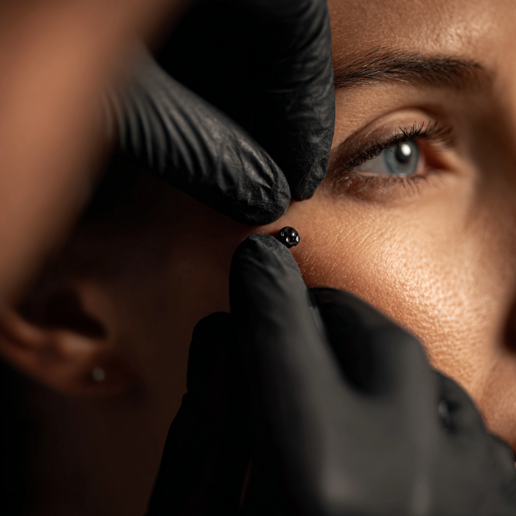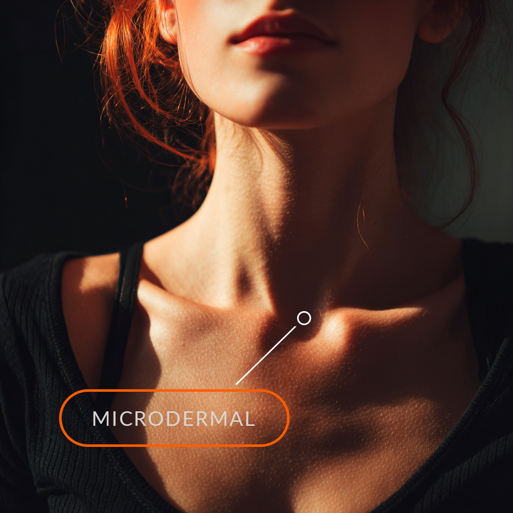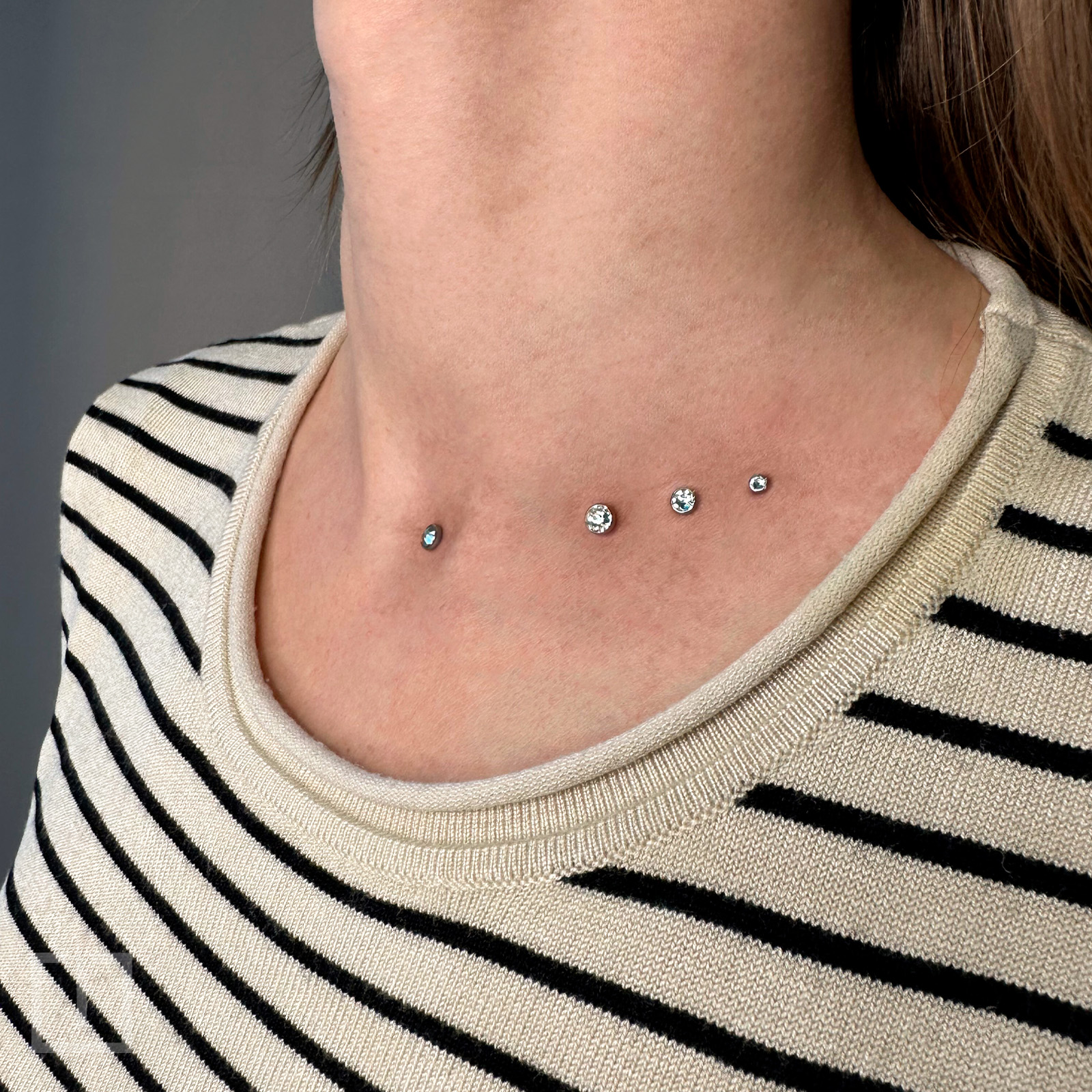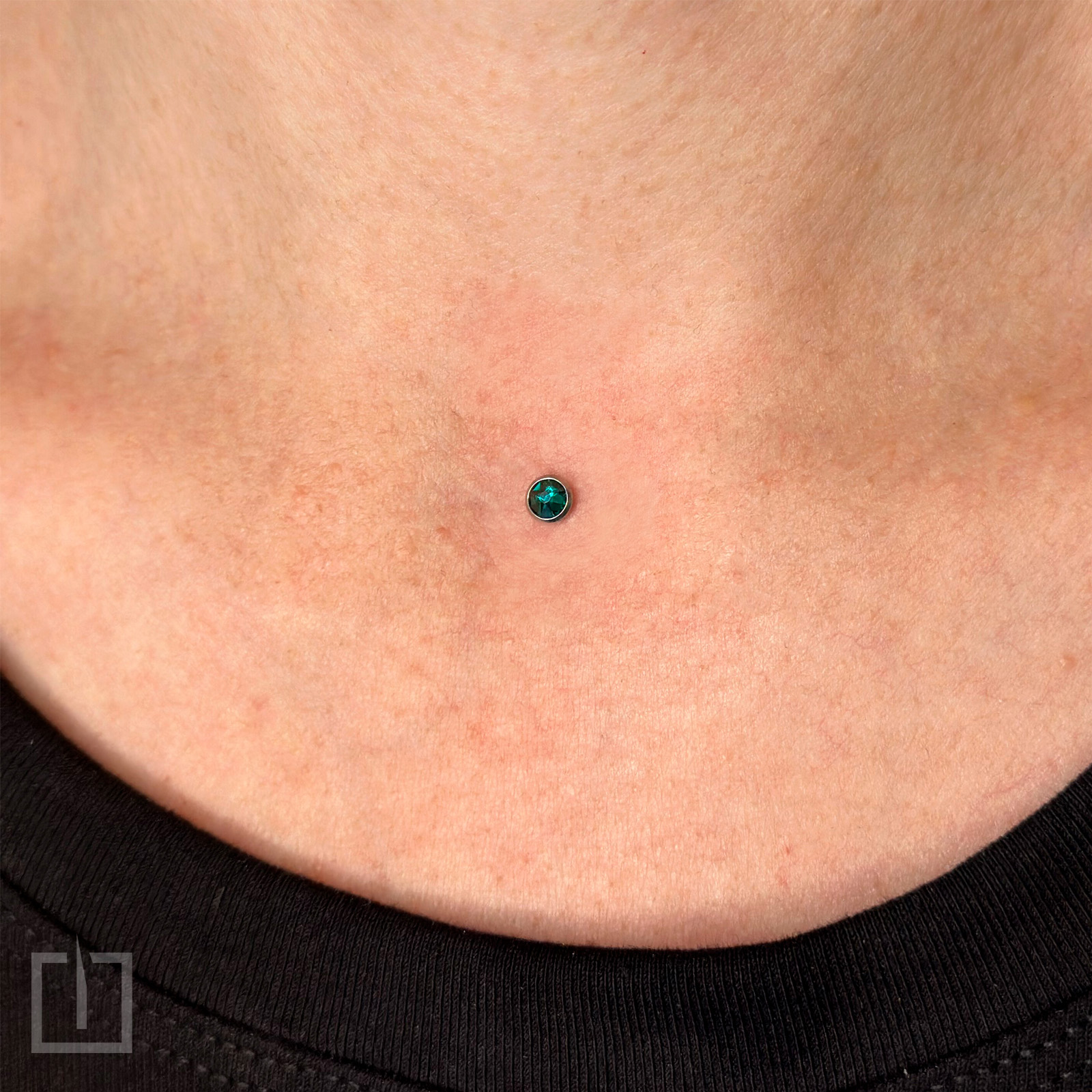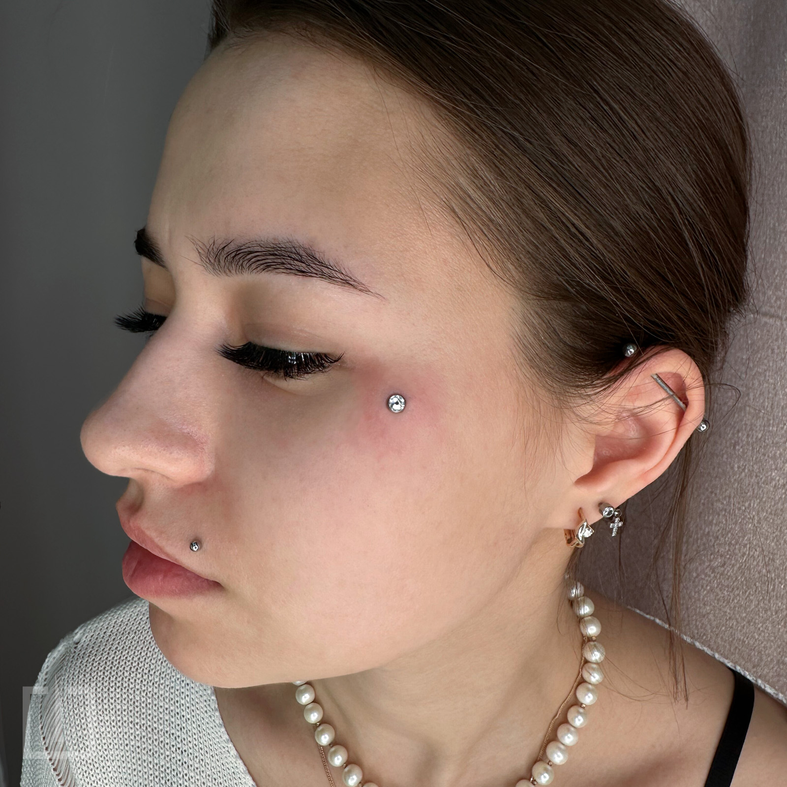 Микродермал — это современный вид пирсинга, который позволяет создавать стильные акценты на практически любой части тела. Его популярность объясняется универсальностью и возможностями для самовыражения. Во время установки под кожу помещается титановый якорь, к которому легко прикручиваются декоративные накрутки. Это дает возможность менять украшения и экспериментировать с различными образами, позволяя вам полностью адаптировать свой стиль под настроение и предпочтения.