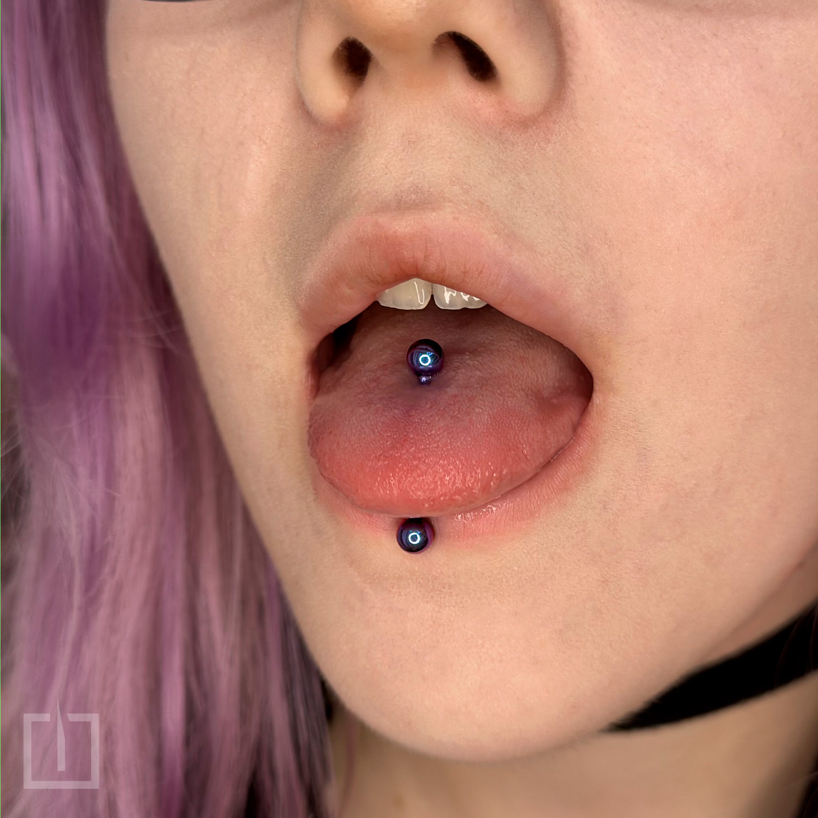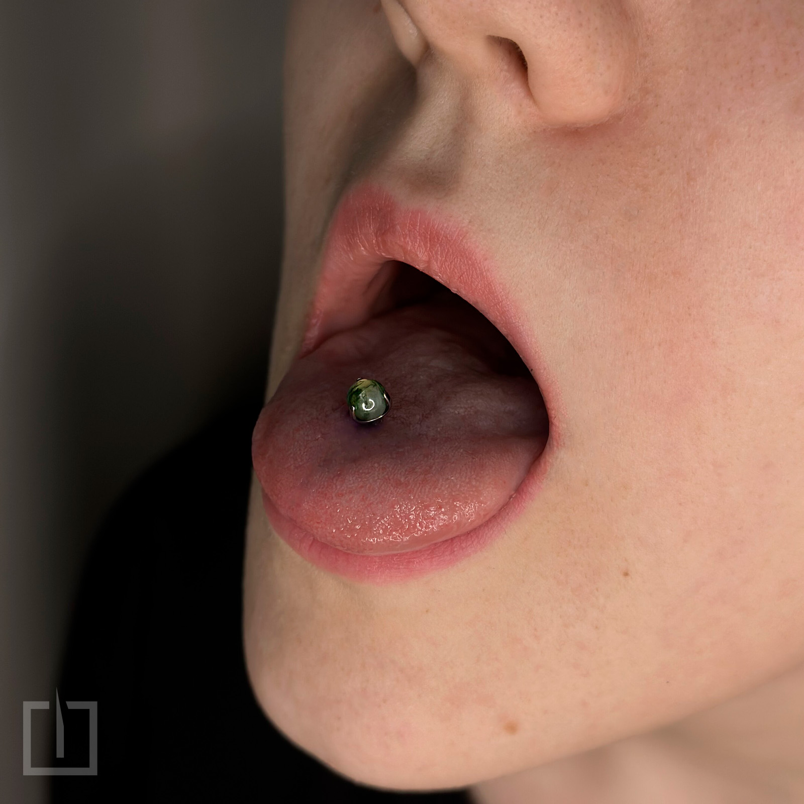 Пирсинг языка— это смелый и эффектный способ самовыражения, идеально подходящий как для мужчин, так и для женщин. Этот вид пирсинга привлекает внимание и добавляет яркий акцент в ваш образ, который при необходимости можно скрыть от окружающих. Классический вертикальный прокол языка выполняется строго по центру для того, чтобы минимизировать риск повреждения сосудов. Глубина прокола зависит от индивидуальных анатомических особенностей, и наш мастер предложит вам оптимальные варианты во время разметки.
