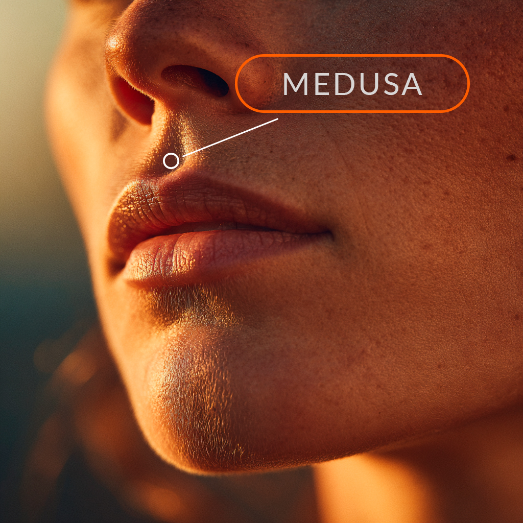 Пирсинг «Медуза» — это уникальный и современный способ подчеркнуть выразительность ваших губ. Этот пирсинг привлекает внимание своей оригинальностью и стильным внешним видом, становясь всё более популярным среди любителей нестандартных украшений. Он добавляет интересный акцент к вашему образу, позволяя вам выделяться и выражать свою индивидуальность.