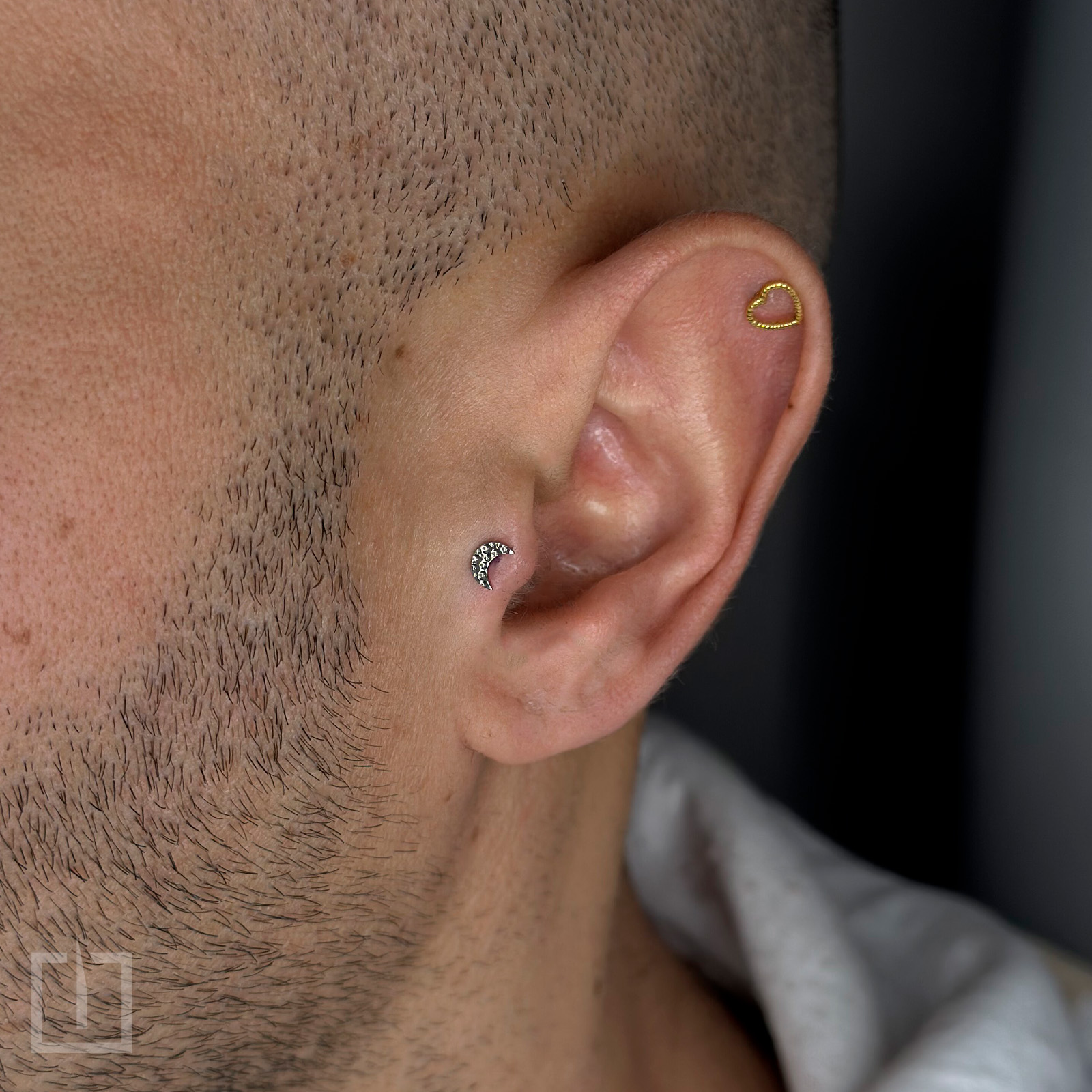 Пирсинг «Трагус» — это стильный и оригинальный способ украсить ухо. Этот прокол выполняется в области козелка и стал популярным выбором для тех, кто ищет что-то необычное. Благодаря своему уникальному расположению, пирсинг Трагус выглядит эффектно и привлекает внимание, а по популярности он не уступает самым востребованным вариантам. Этот пирсинг предлагает множество возможностей для экспериментов с различными украшениями, позволяя вам выразить свою индивидуальность.