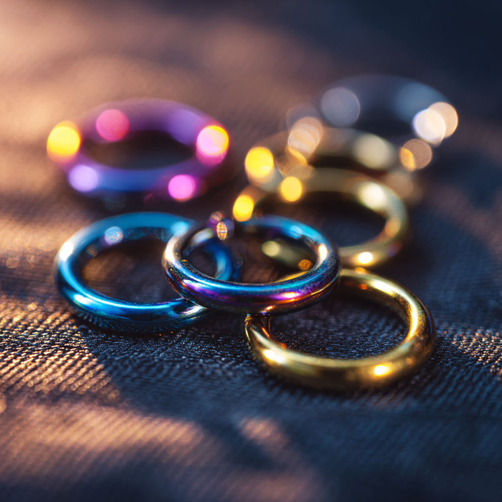 Анодирование — это электрохимический процесс, используемый для обработки металлических украшений, включая изделия для пирсинга. Этот метод не только создает защитный слой на поверхности металла, но и позволяет достичь ярких и насыщенных цветов, придавая украшениям эффектный и уникальный внешний вид.